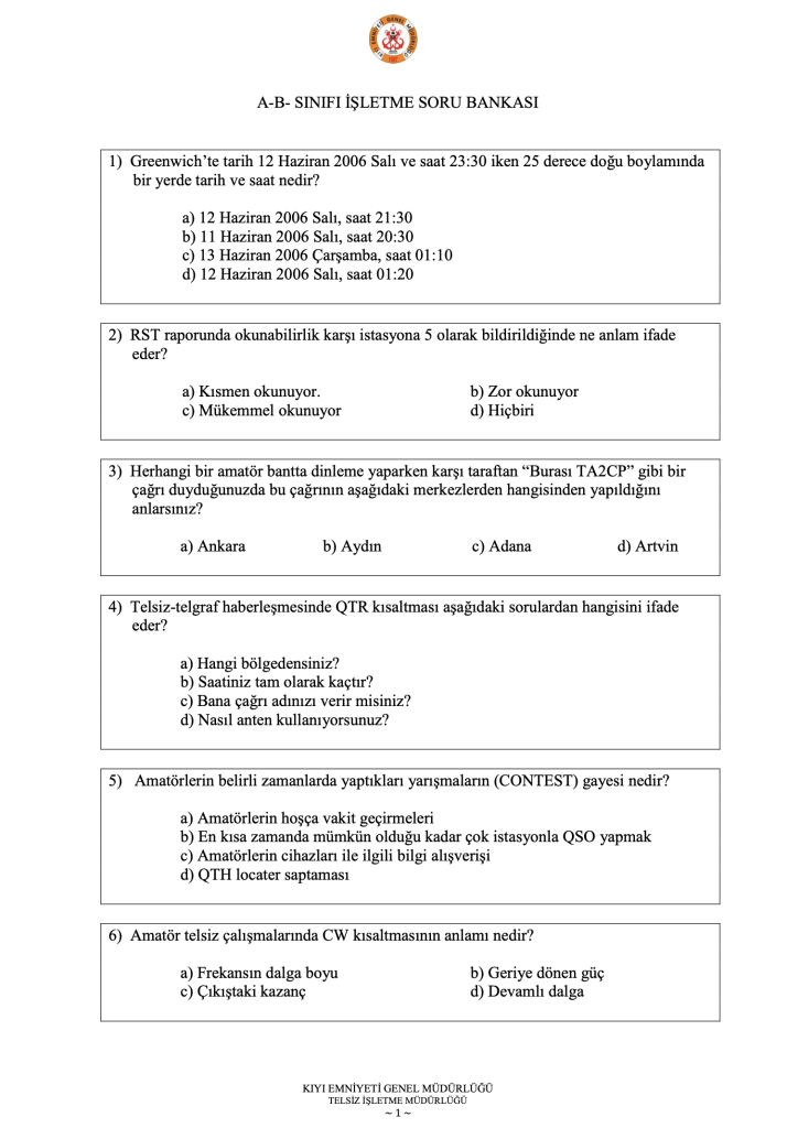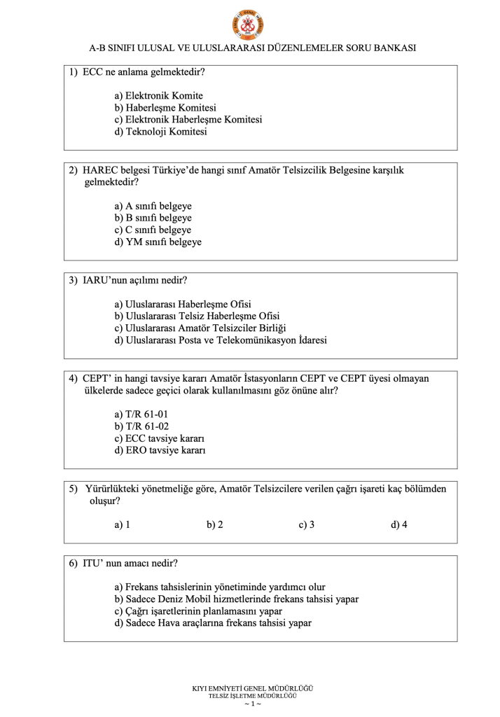 A – B Sınıfı Ulusal ve Uluslararası Düzenlemeler Soru Bankası