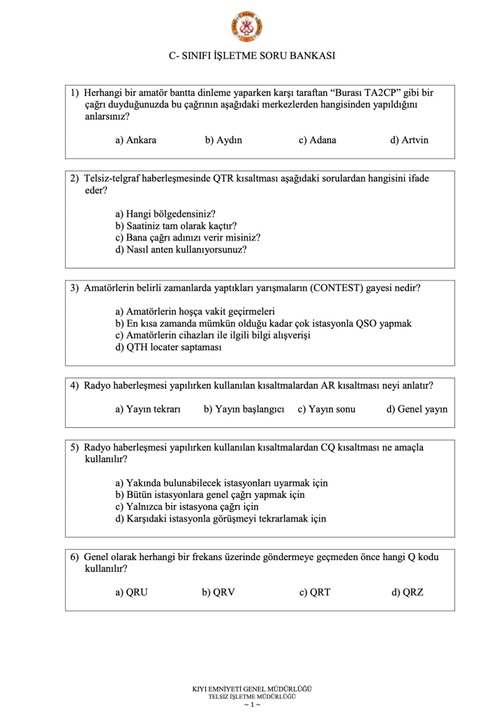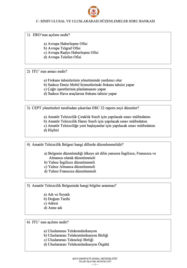 C Sınıfı Ulusal ve Uluslararası Düzenlemeler Soru Bankası